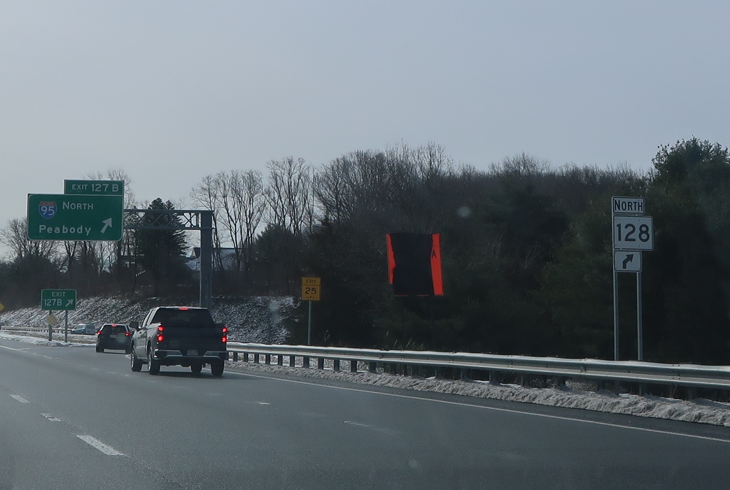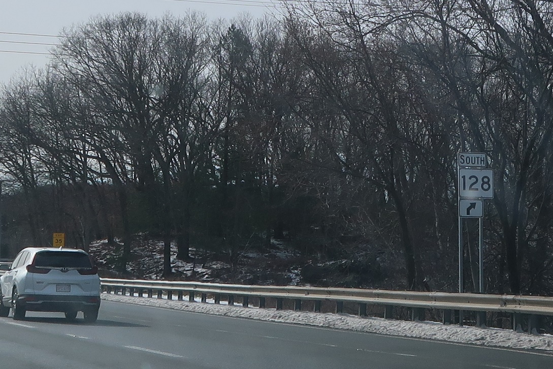 Exit ahead for Route 128 north.