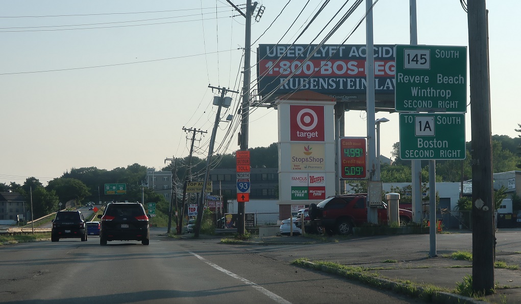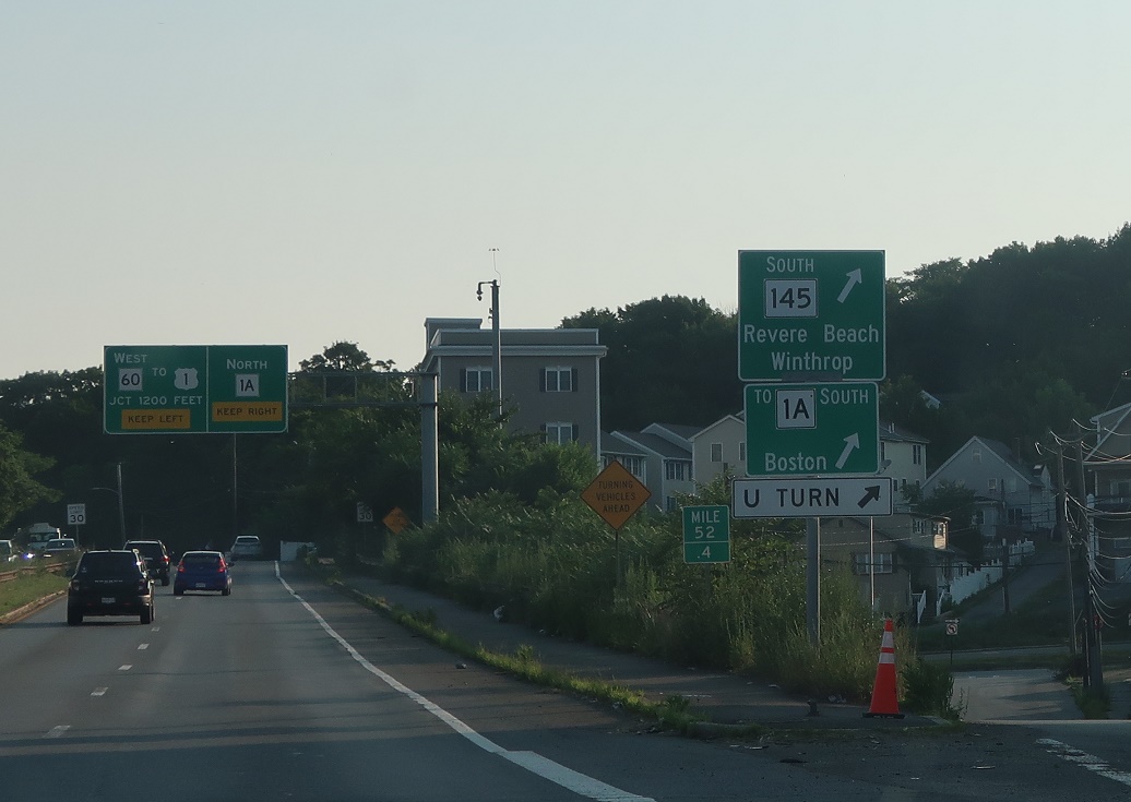 Exit for Route 145 south, and a u-turn back to 1A south. Stay on Burbank Highway for 1A north.