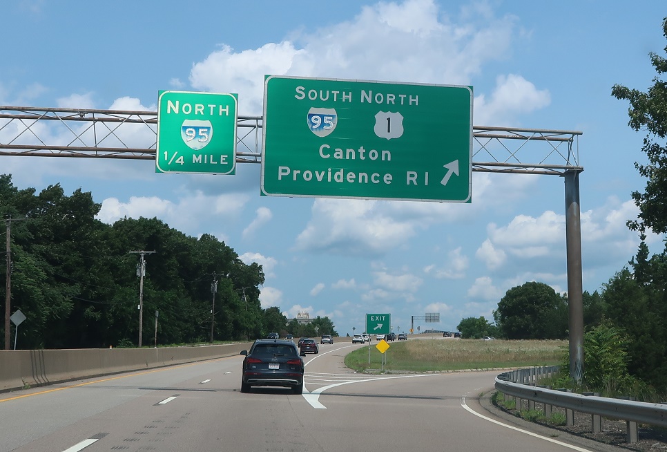 Exit for 95/128 south, which ferries 1 north with it over to I-93. Route 1A south also joins 95/128 from the north here.