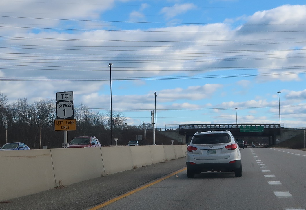 Keep right ahead for I-95/Blue Star Turnpike south towards Boston. Keep left for 95/Blue Star north and U.S. 1 Bypass.