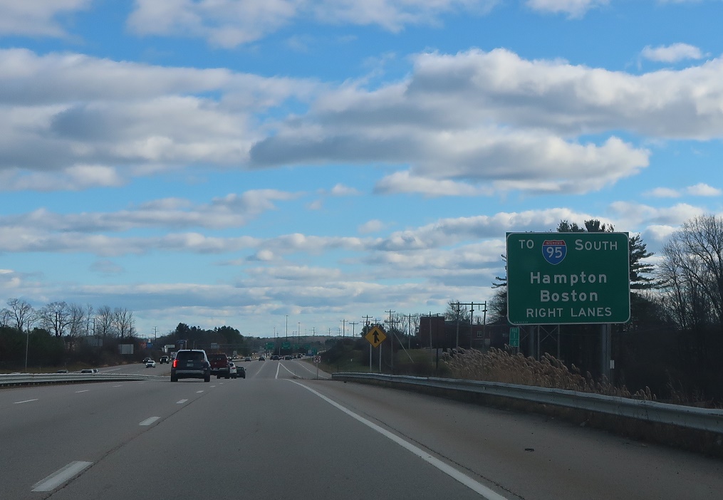 We’ll first approach the I-95 south exit – exit right for the I-95 Blue Star Turnpike south to Boston.