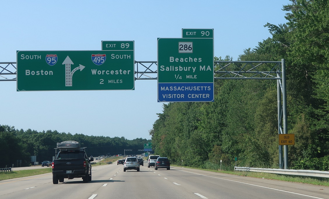 Exit in a quarter mile to connect to Massachusetts 286, which is not the direct connection to 286. We’ll also approach Massachusetts’ I-495 in two miles.