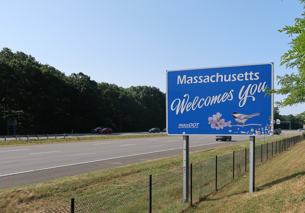 Welcome to the Bay State! The Blue Star Turnpike ends.