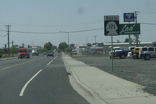 Reassurance shield at the beginning of SR 171. SR 171 runs entirely in the city of Moses Lake, mainly serving to put the I-90 business loop under DOT jurisdiction, but it won’t pick up the business loop for a bit