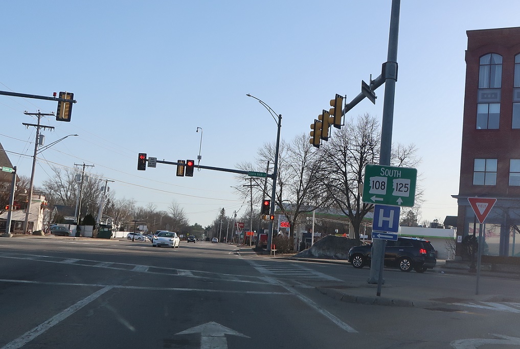 A few blocks later, turn left for Route 108 south. Stay straight to stay on Route 125 south. Turn right for Route 202A west, which isn’t signed here for some reason.