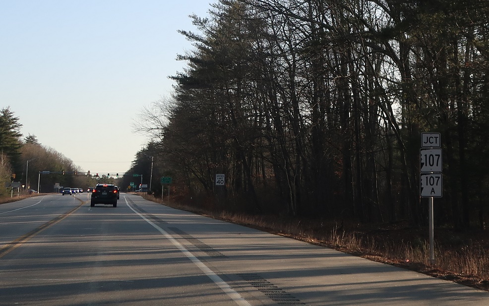 At the light ahead, we’ll approach the Route 107 split, with 107 quickly connecting to 107A.
