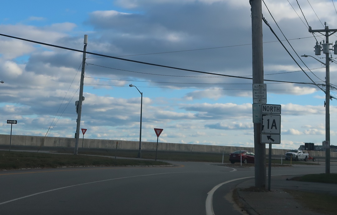 Soon thereafter, we’ll approach Route 1A. Keep right for 1A in both directions.