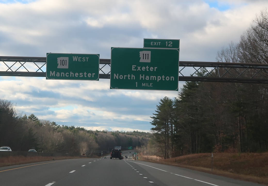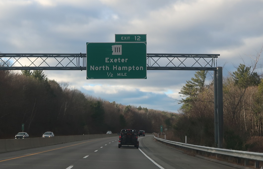 Exit for Route 111, which heads west into Exeter center and east to North Hampton