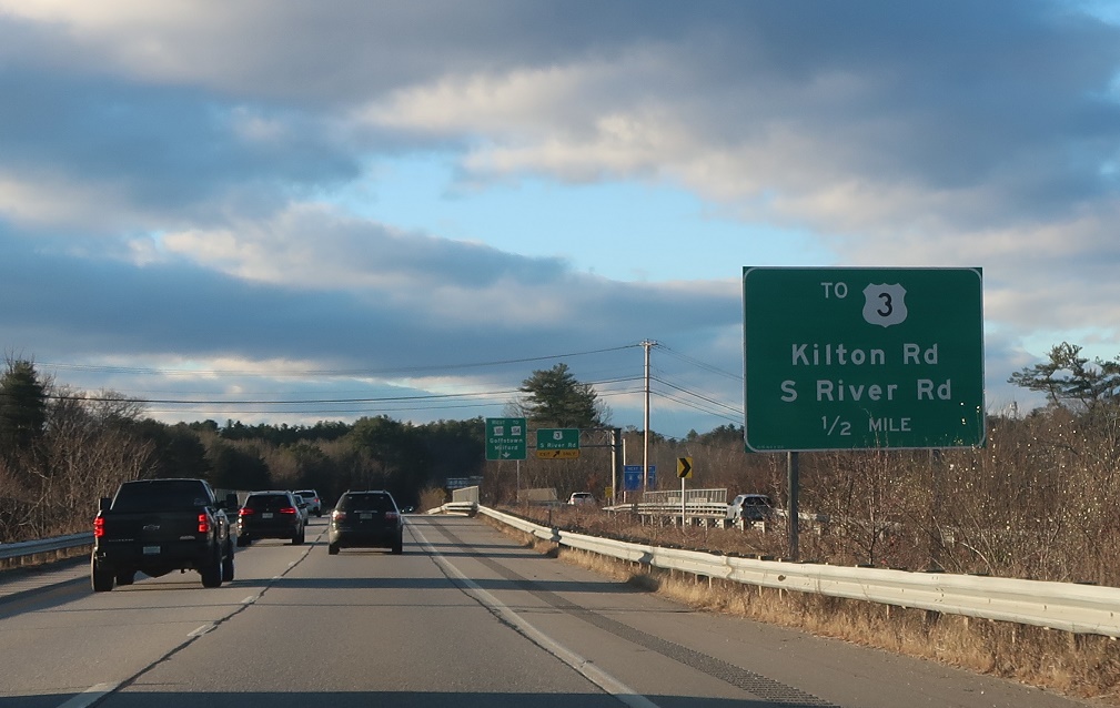 After the I-293 split, we’re a hale mile from the connector ramps to U.S. 3 via Kilton Road.