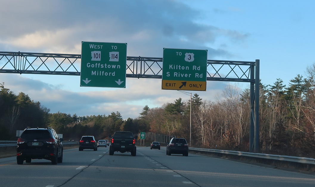Exit to connect to U.S. 3. Keep left for 101 west to Route 114.