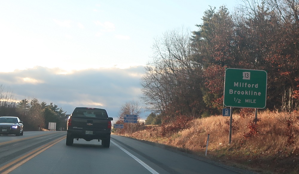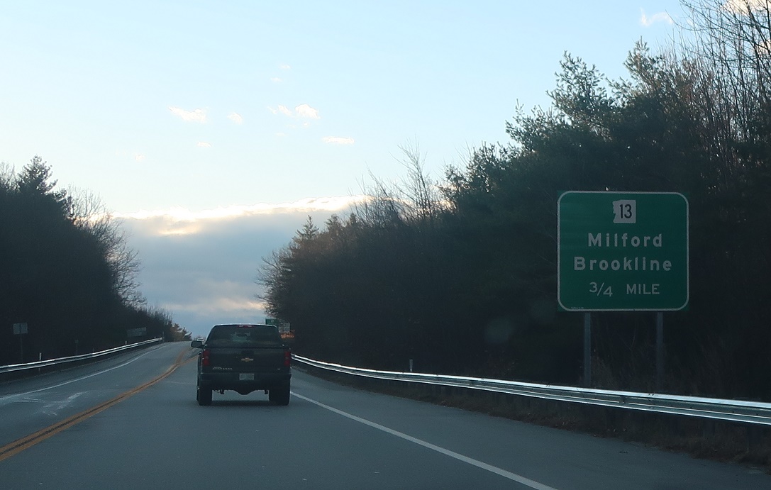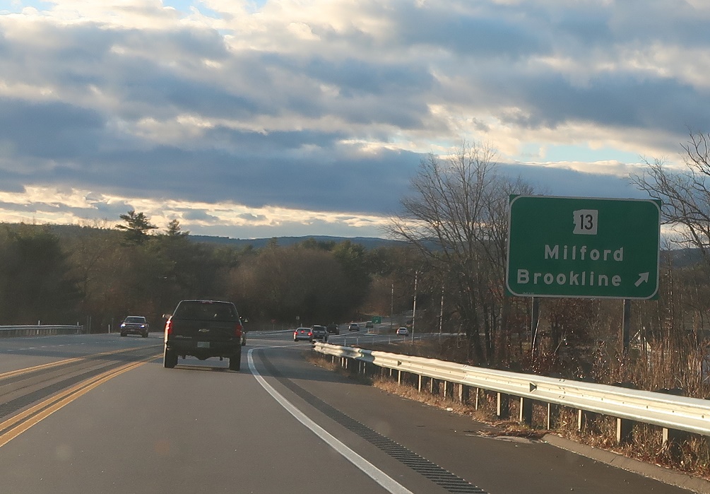 Just after the 101A split, we’ll approach Route 13 as we turn to bypass Milford to the south.