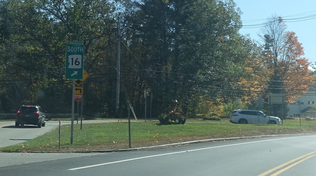A third of a mile later, keep right to stay on 16 south. Turn left to connect back to 16A north, which rejoins here.