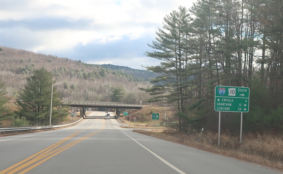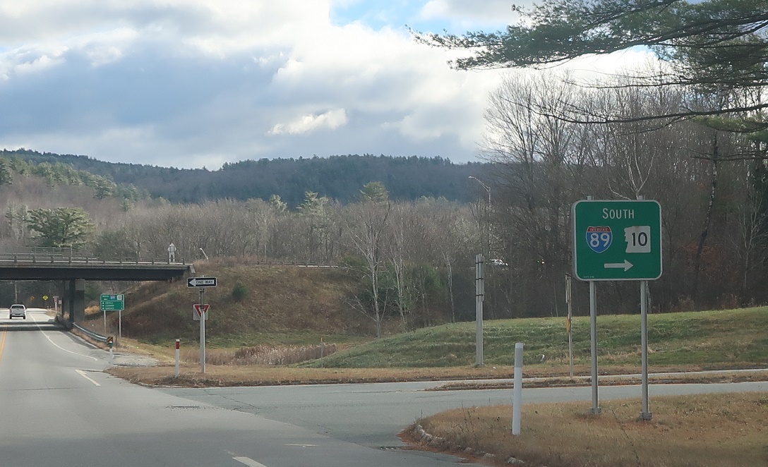 Turn right ahead for I-89/Route 10 south towards Grantham and Concord.