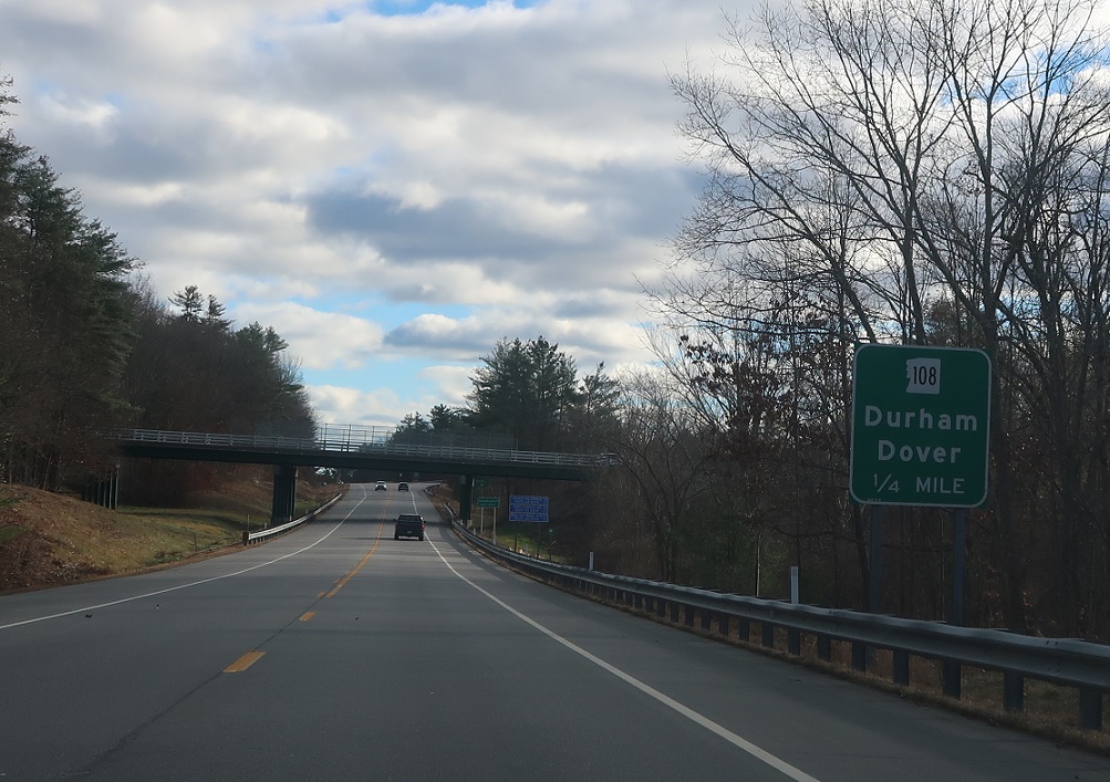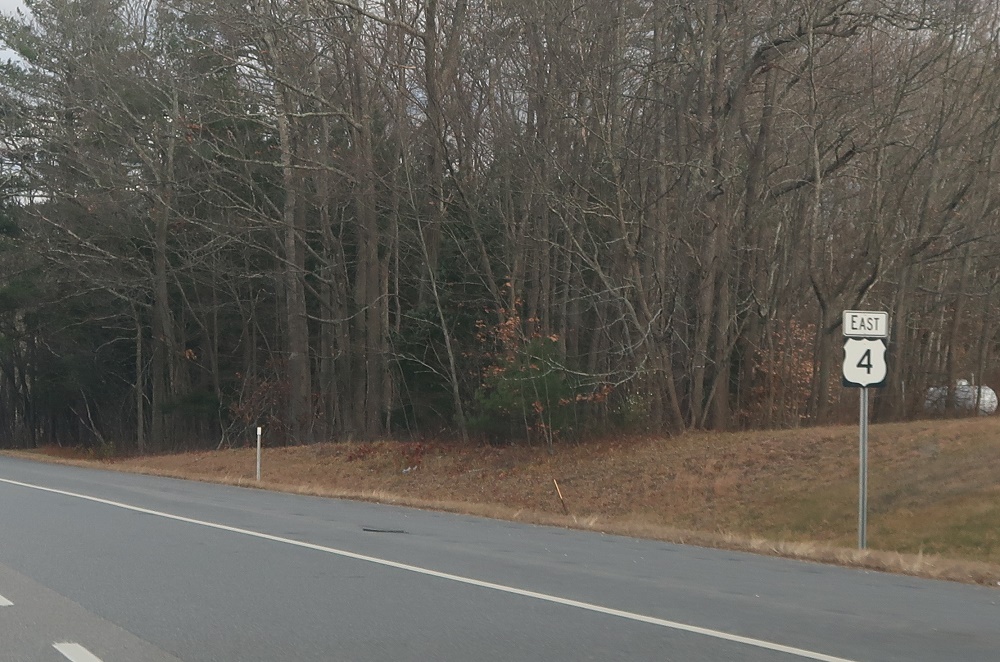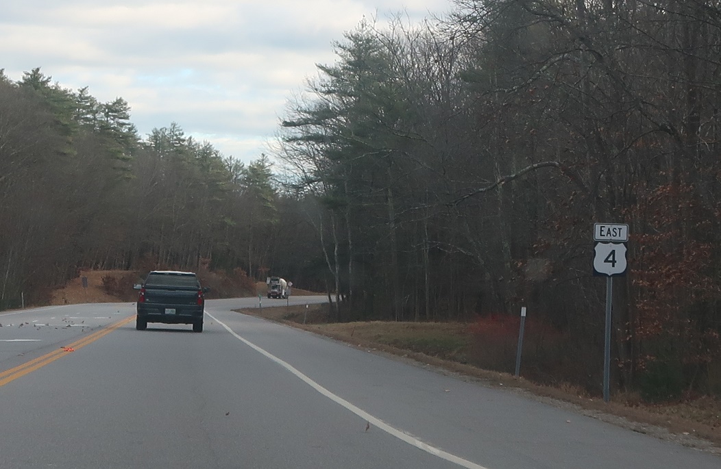 Reassurance shield after Route 155A. U.S. 4 mostly bypasses Durham center to the north as a controlled access highway.