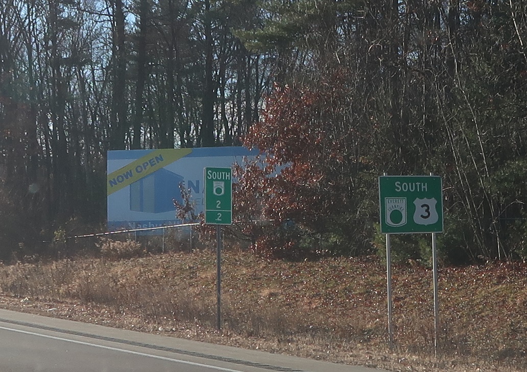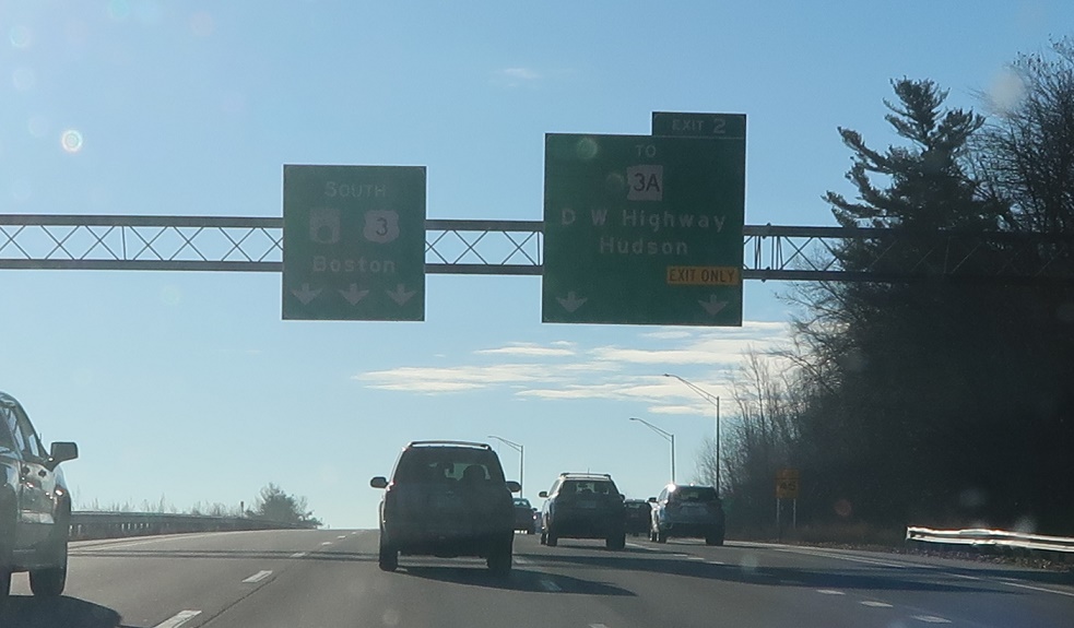 Welcome to Massachusetts! U.S. 3 continues to its southern terminus in Boston. The Everett Turnpike ends.