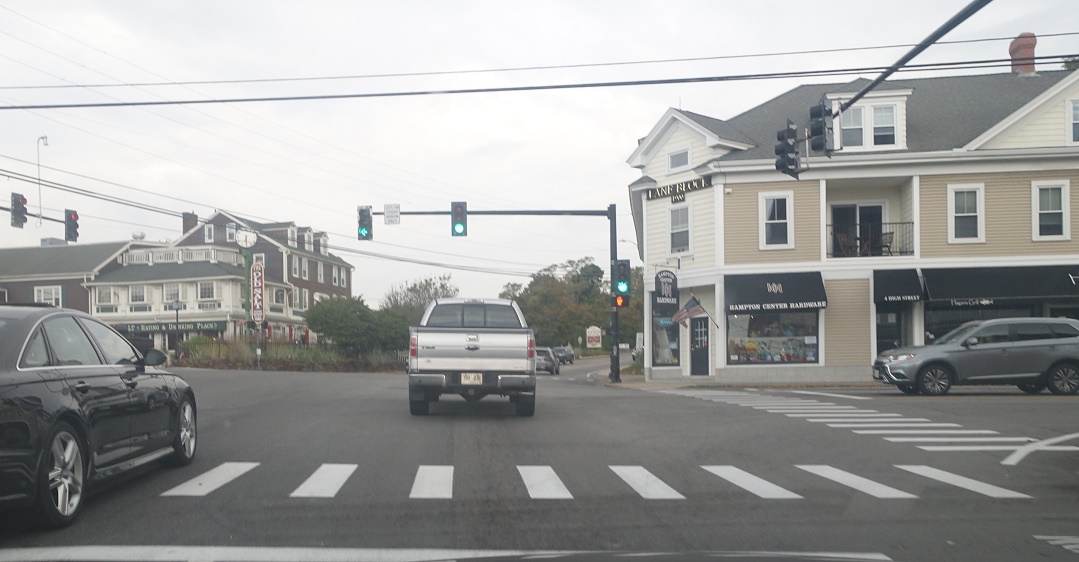 A few blocks later, we’ll approach NH 27, which is also unsigned right here. Turn right for 27 east and left for 27 west.