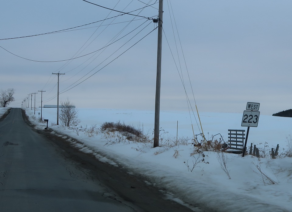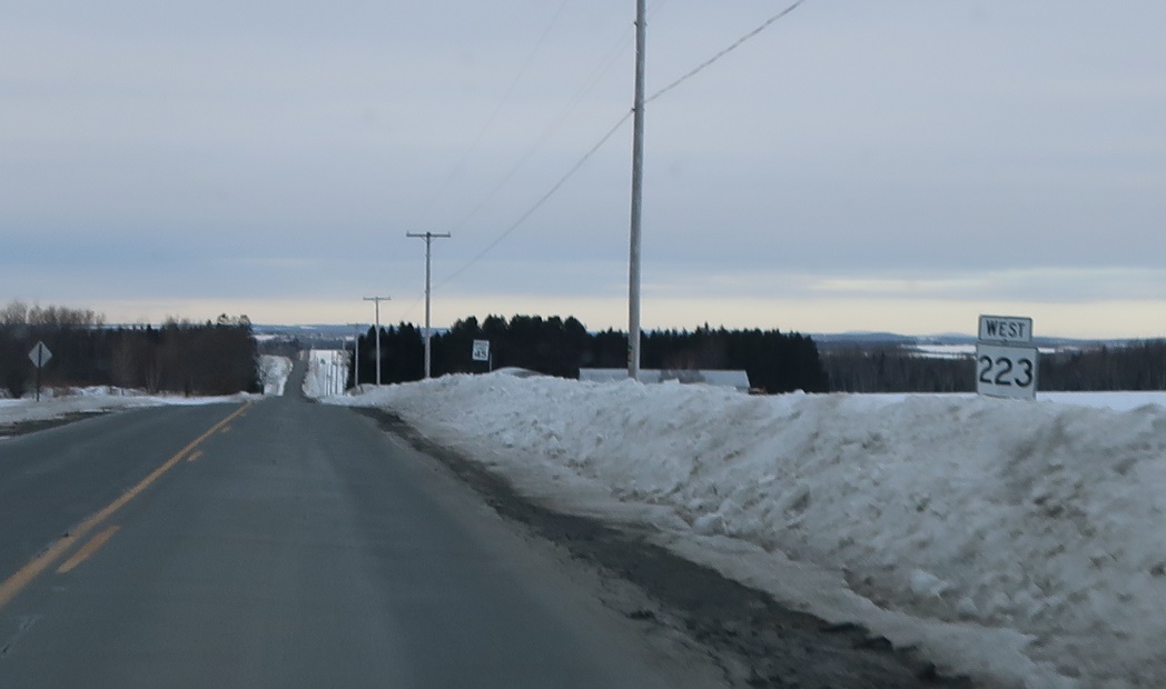 Soon thereafter, we’ll approach SR 89. Turn right for 89 east to Limestone and left for 89 west to Caribou. SR 223 ends.