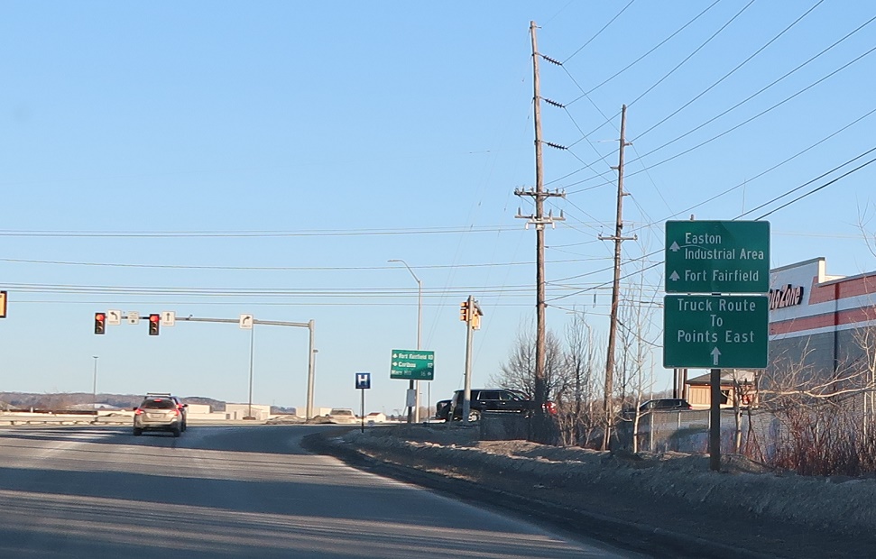 Stay straight to stay on the 163 truck route to Fort Fairfield as we approach U.S. 1.