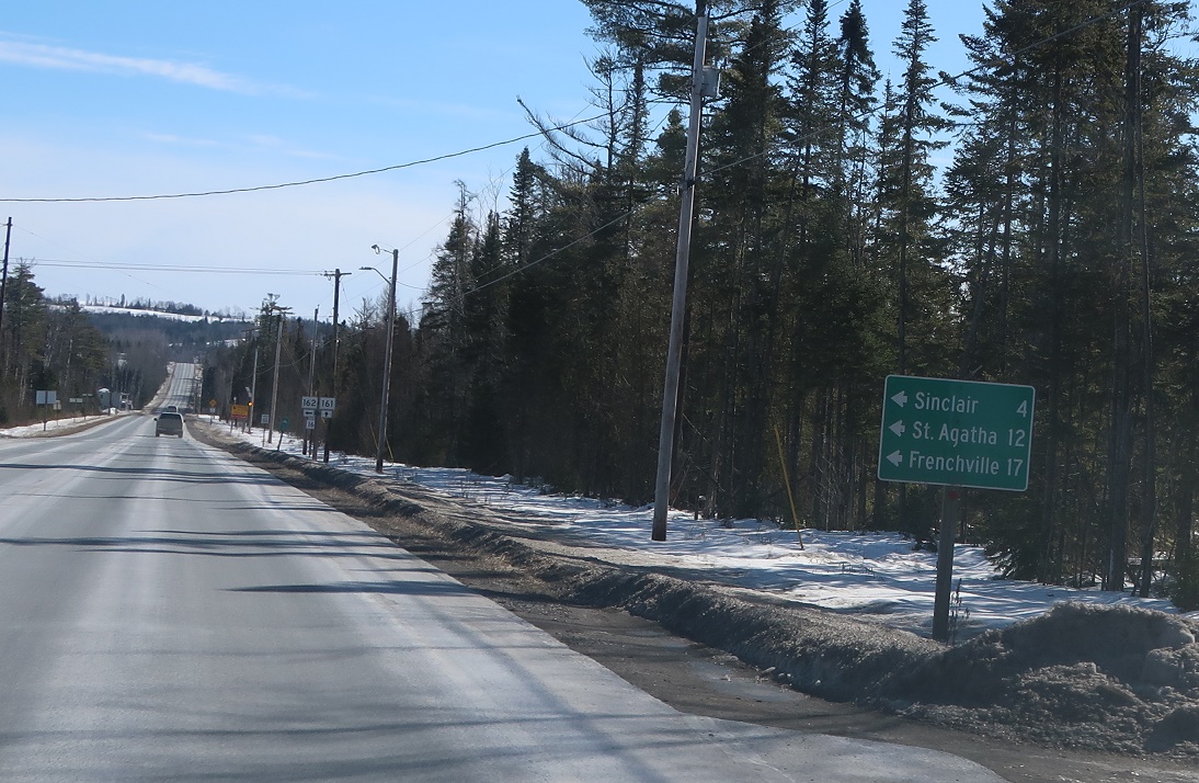 Follow SR 162 back up to the U.S. 1 corridor and Frenchville/St. Agatha via Sinclair.