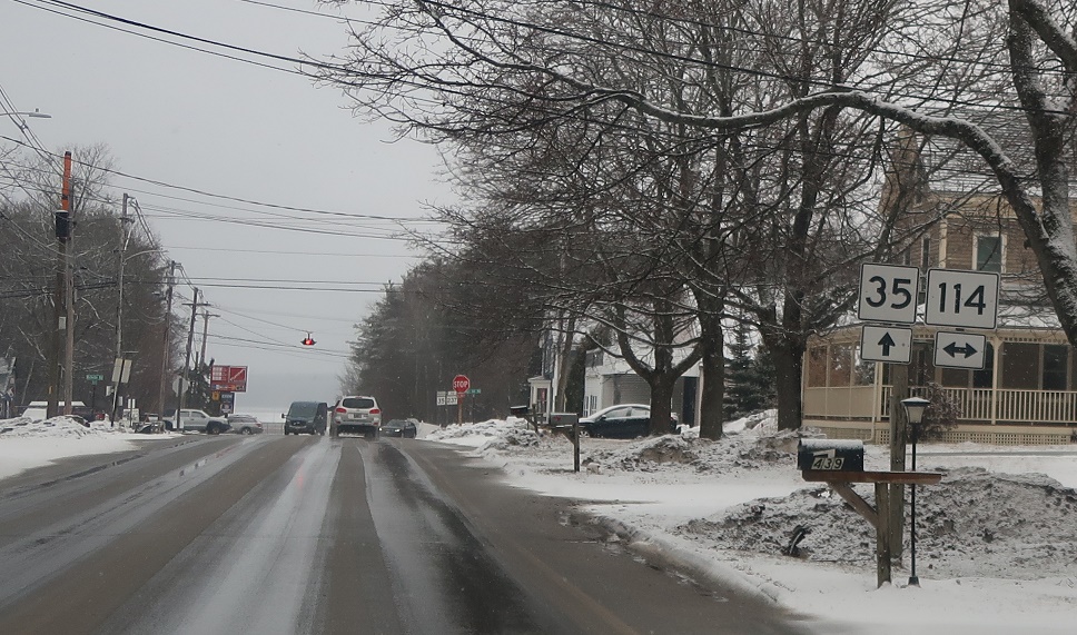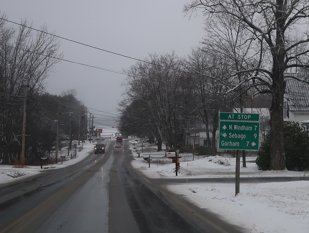 Follow 114 south to Gorham and north to Sebago. Stay on 35 north for North Windham. All of this occurs at the stop sign ahead, of course, not at these random driveways.
