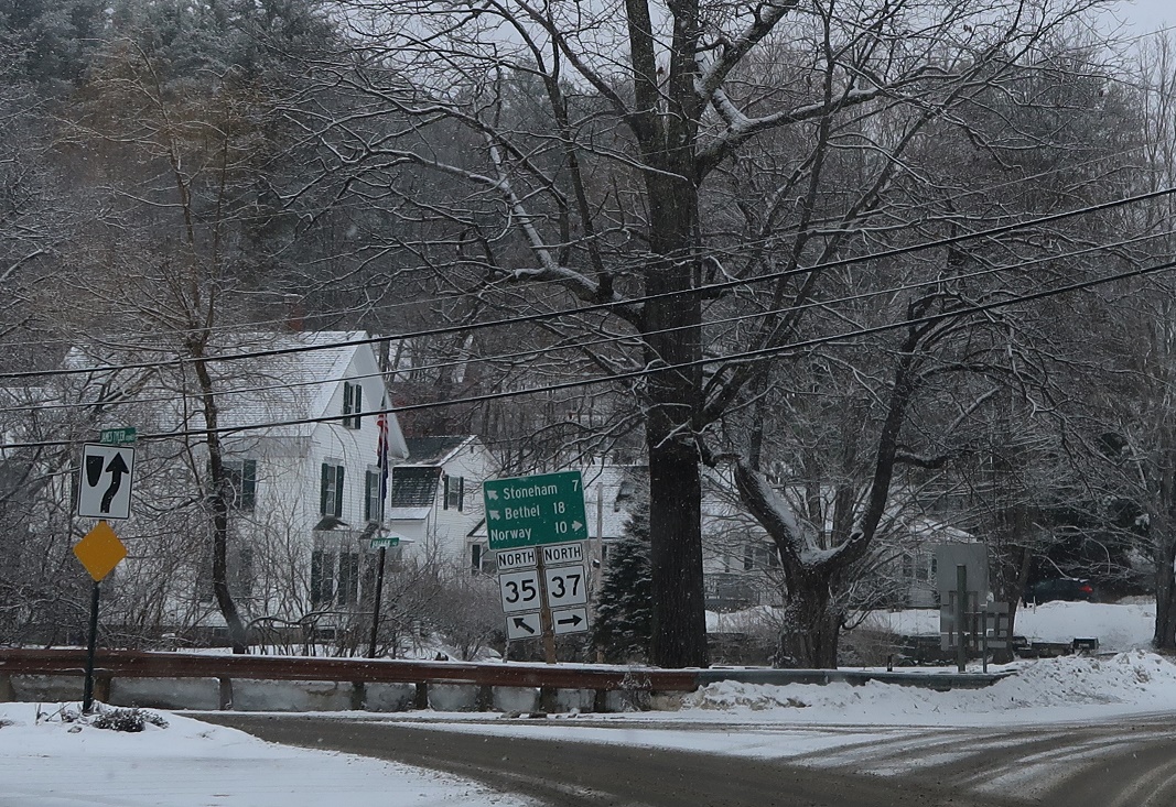 A few miles later, in Waterford center, SRs 35 and 37 will split. Follow 35 north to Stoneham and Bethel. Take 37 north to Norway.