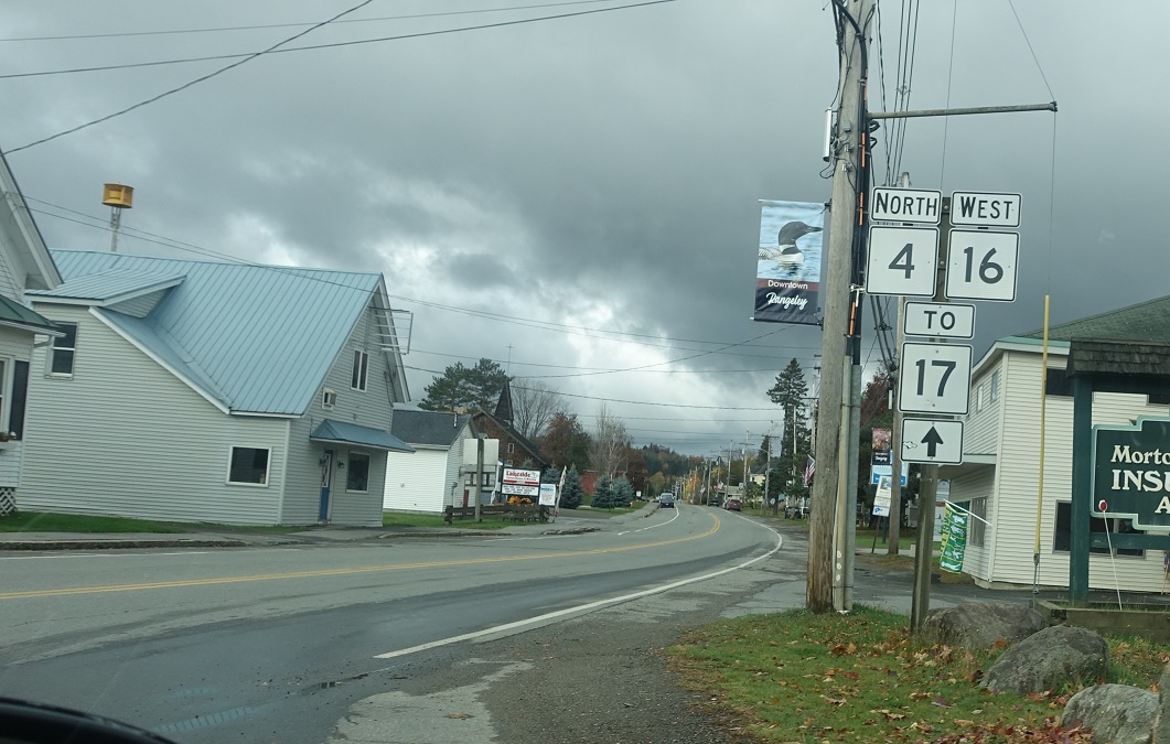 Soon thereafter, 4 and 16 will split. Follow 4 north a very short distance to its terminus in Oquossoc. Take 16 west to Wilsons Mills.