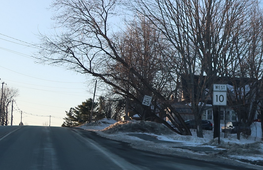 After bearing left, we’ll travel a few blocks and approach US 1. Turn right for 1 north and left for 1 south at the light in the background. SR 10 ends.
