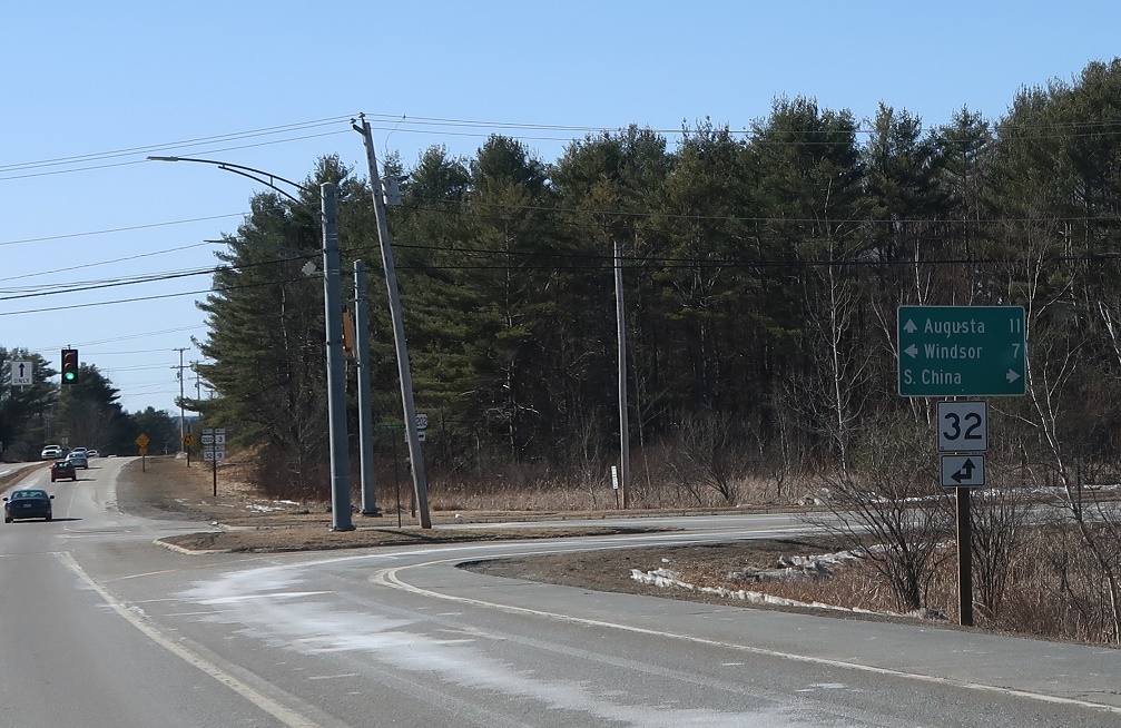 Soon thereafter, we’ll approach SR 32. Turn right for a local road into South China. Stay straight for 202/3/9 west and 32 north towards Augusta. Follow 32 south to Windsor.