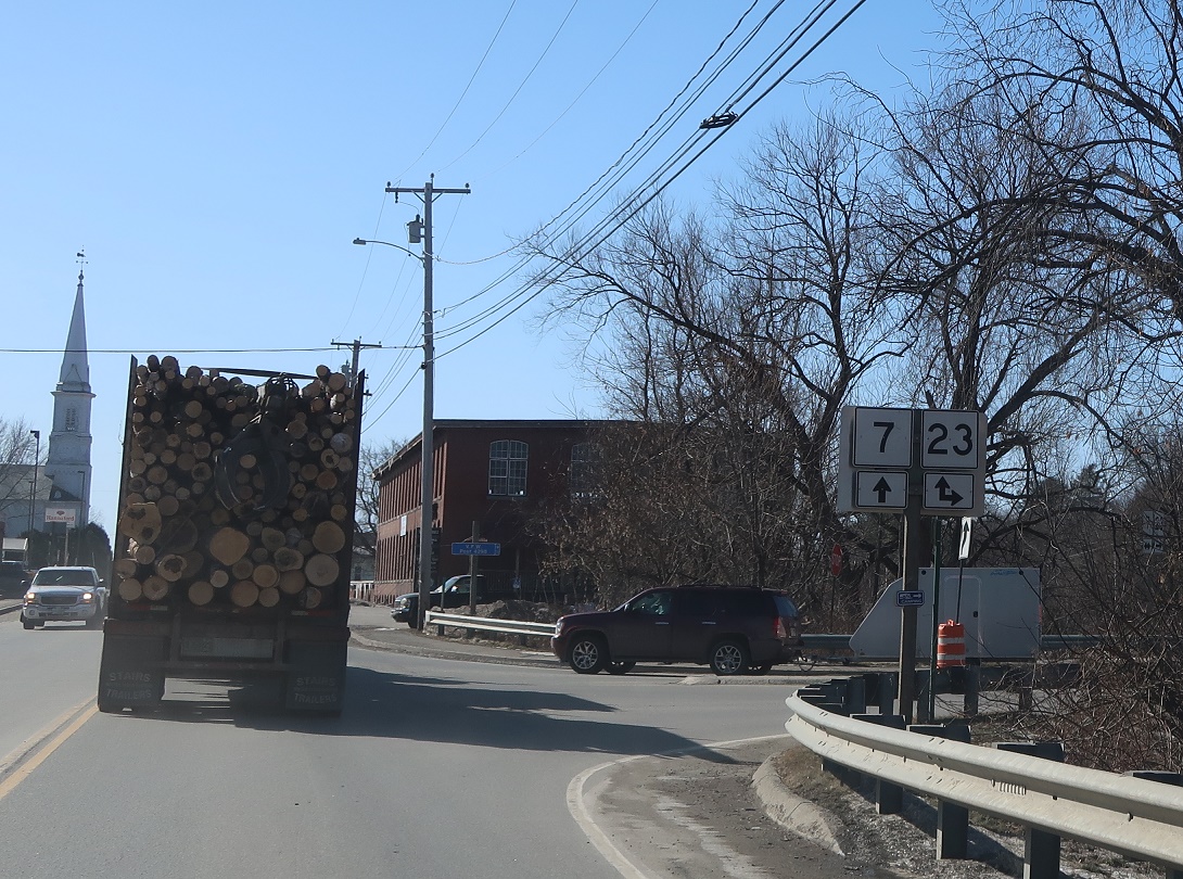 In Dexter center, we’ll approach SR 23. Follow 23 north to Guilford. 23 south briefly joins 7 south as 7 goes to Newport.