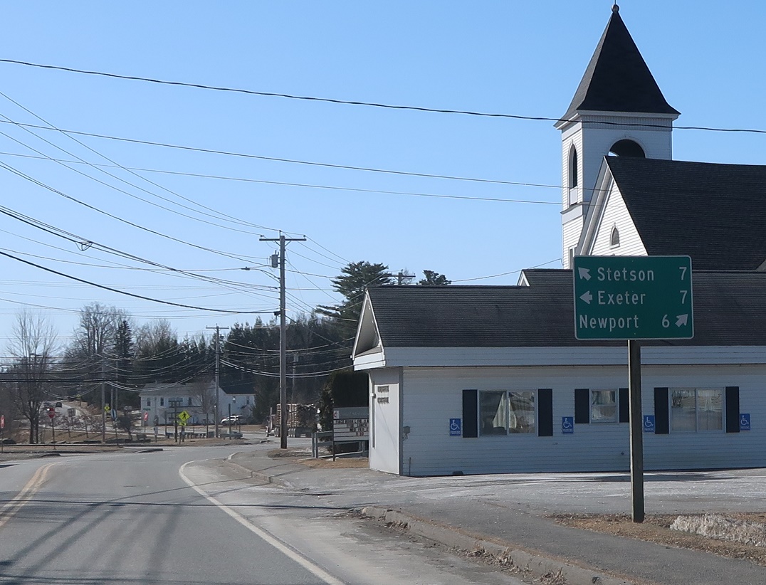 Turn left for 11 north/43 east to Exeter. Keep right for 7/11 south and 43 west, with 7/11 heading to Newport. Turn left just after the 11/43 junction for 222 east to Stetson.