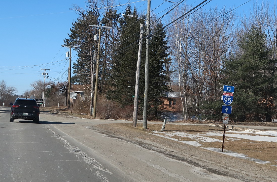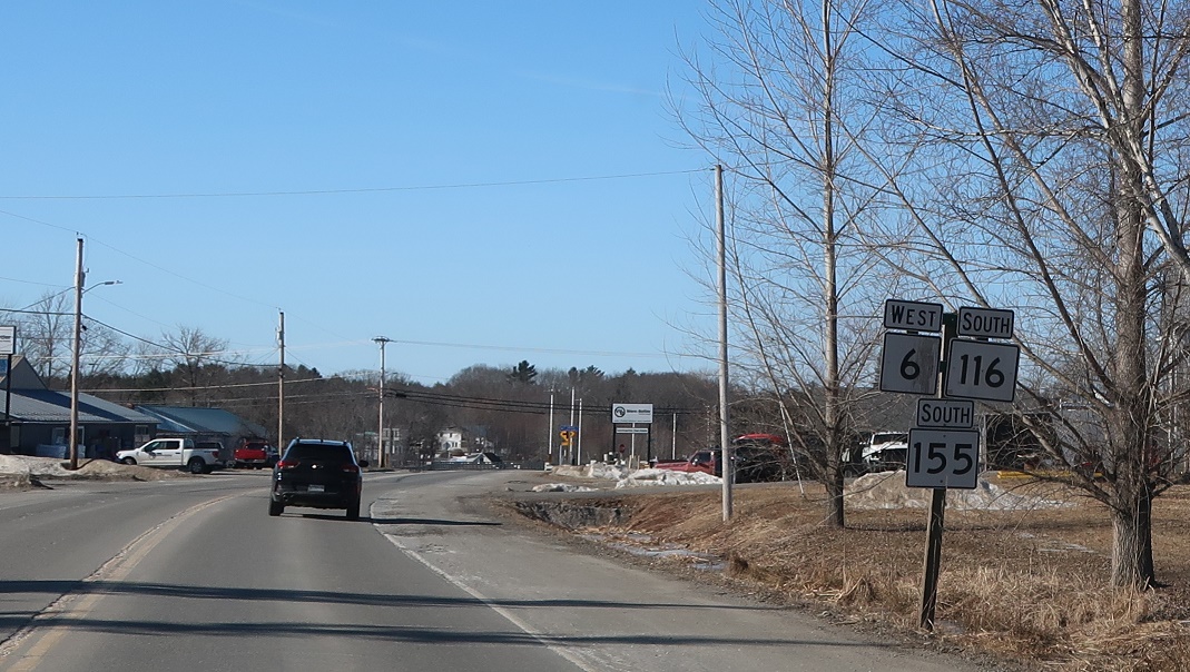 Reassurance shield soon thereafter. Up ahead, we’ll cross the Penobscot River into Howland and SR 116 south will immediately split from 6/155 without signage.