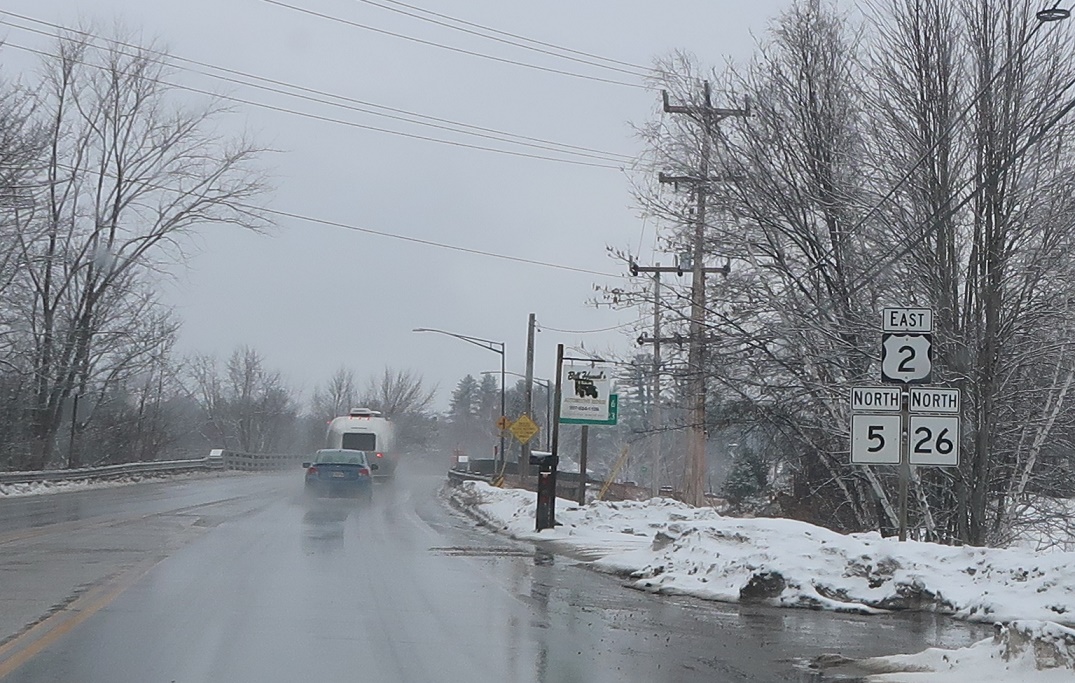 Follow 26 north to Upton and Errol, N.H. Stay on 2 east/5 north for Rumford.