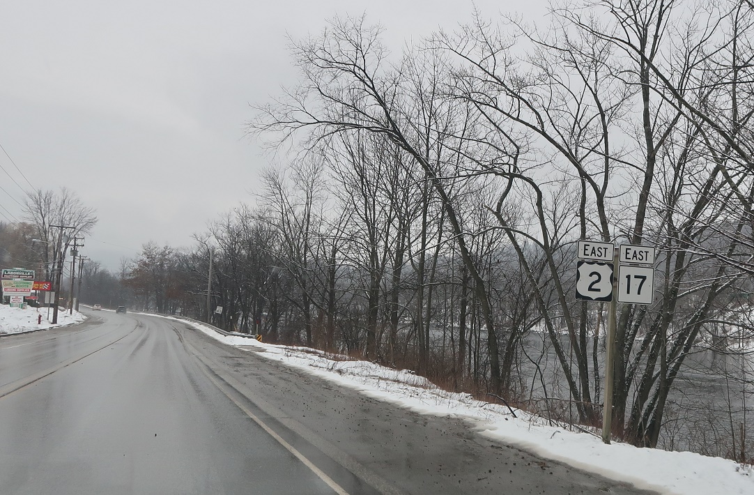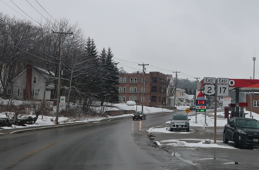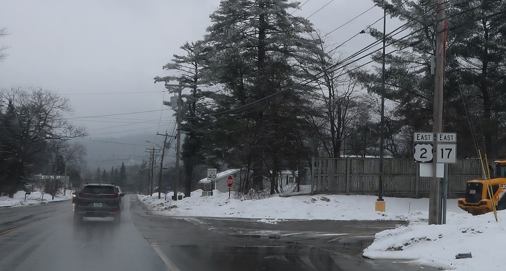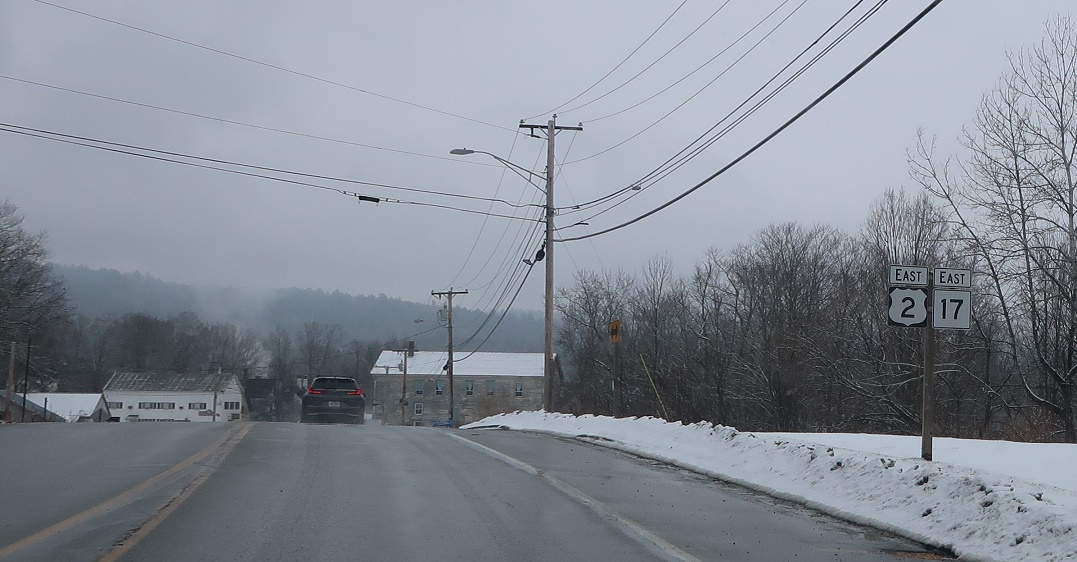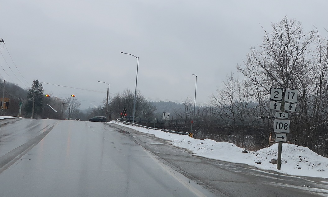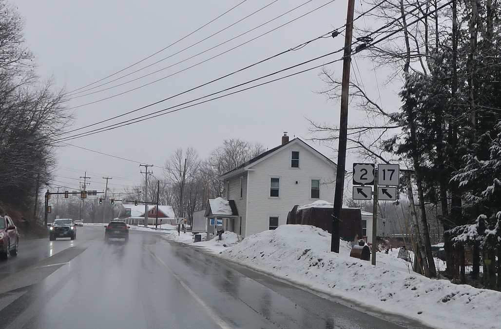 As we head out of Mexico center, turn right to cross the Androscoggin River to SR 108. Stay straight to stay on 2/17 east.