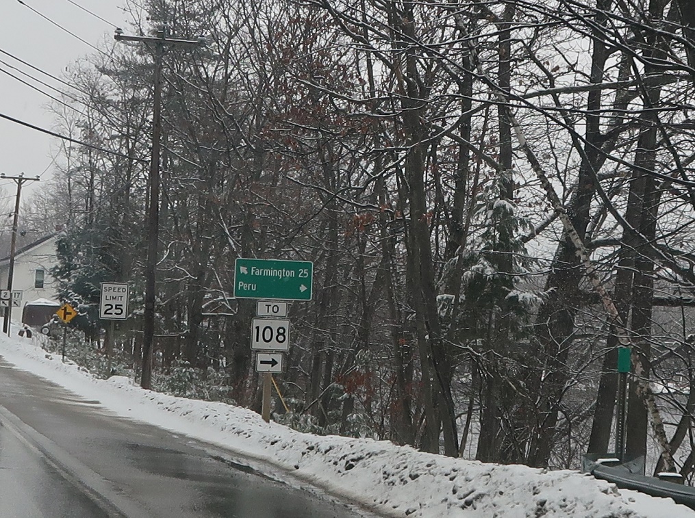 As we head out of Mexico, turn right for another connector over the Androscoggin to SR 108. Keep left for Farmington.