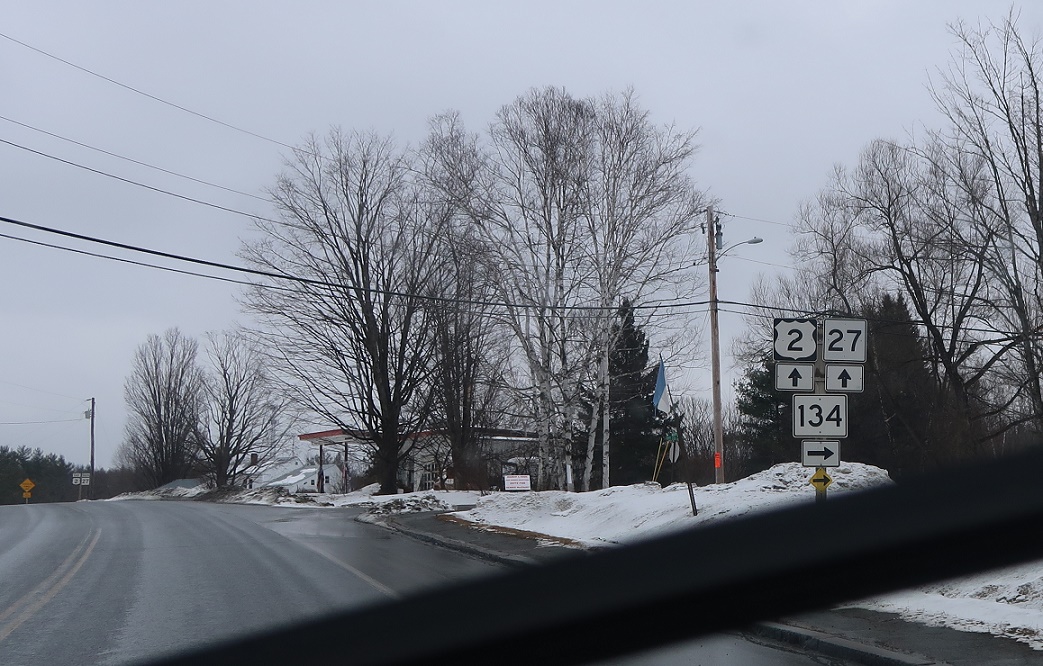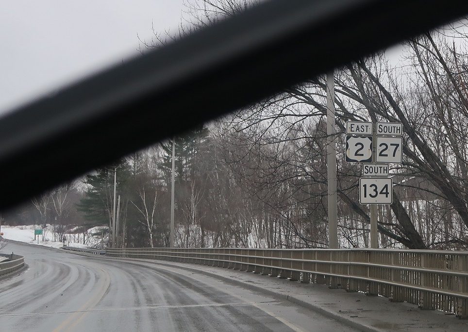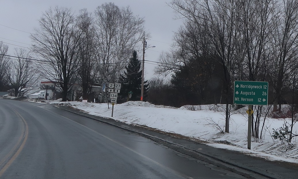Soon thereafter, turn right for 134 south for Mt. Vernon. Stay on 2 east for Norridgewock and 27 south for Augusta.