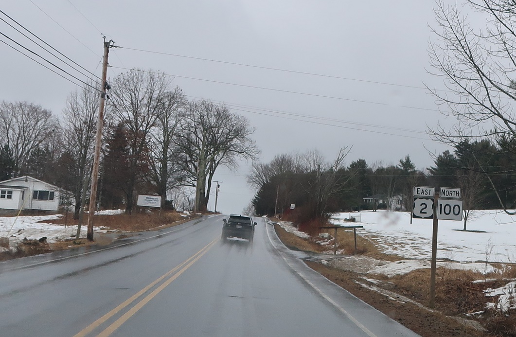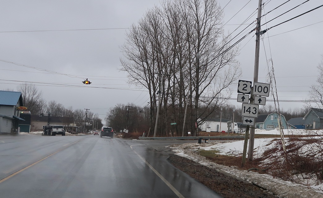 Turn right for 143 south and left for 143 north. Stay straight for 2 east/100 north.