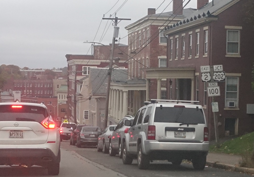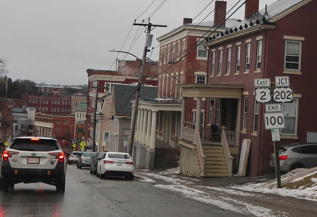 A couple blocks later, in downtown Bangor, SR 100 ends. We’ll also approach the former eastern terminus of US 202, which was truncated back to I-395 at some point in the 80s. However, 202 has consistently been signed from US 2 since then and reputable sites such as Travel Mapping consider this to still be the eastern terminus, so we’ll consider that to be the case here too, since Corco Highways takes a maximalist approach to what counts as a state highway. With that in mind, turn right on Main St for 202 east. Stay straight to stay on 2 east.
