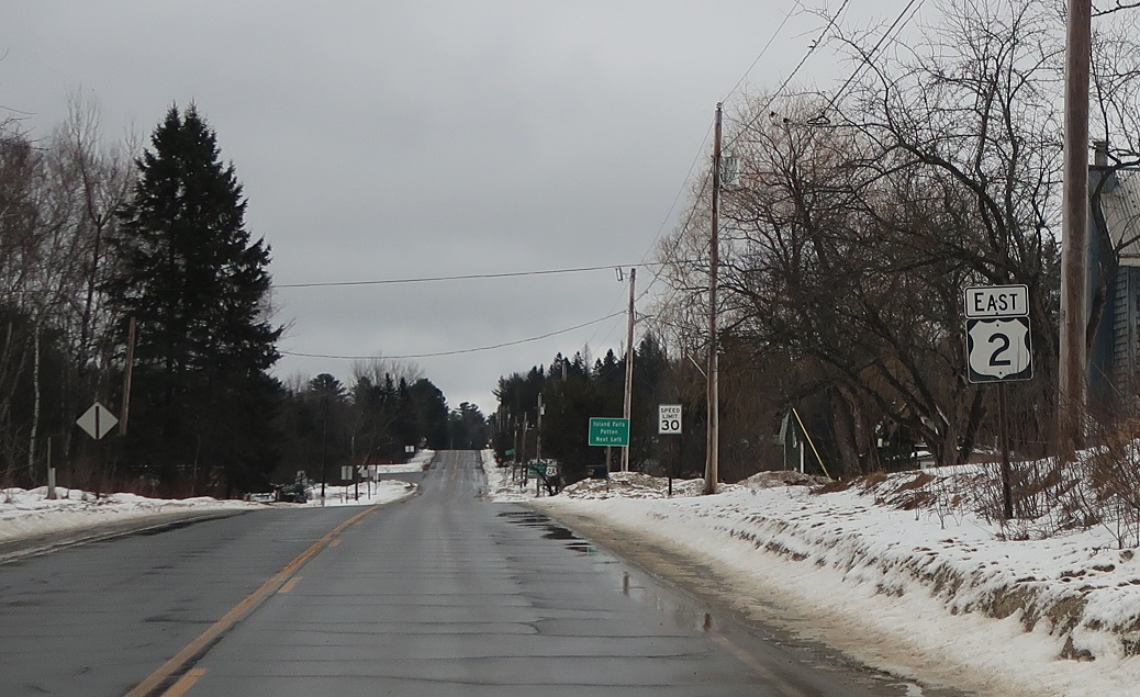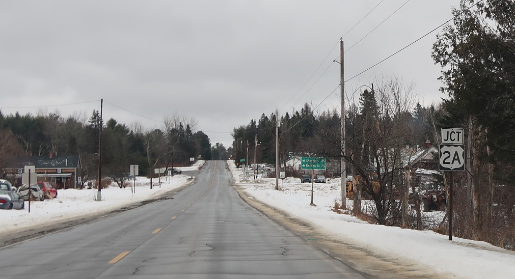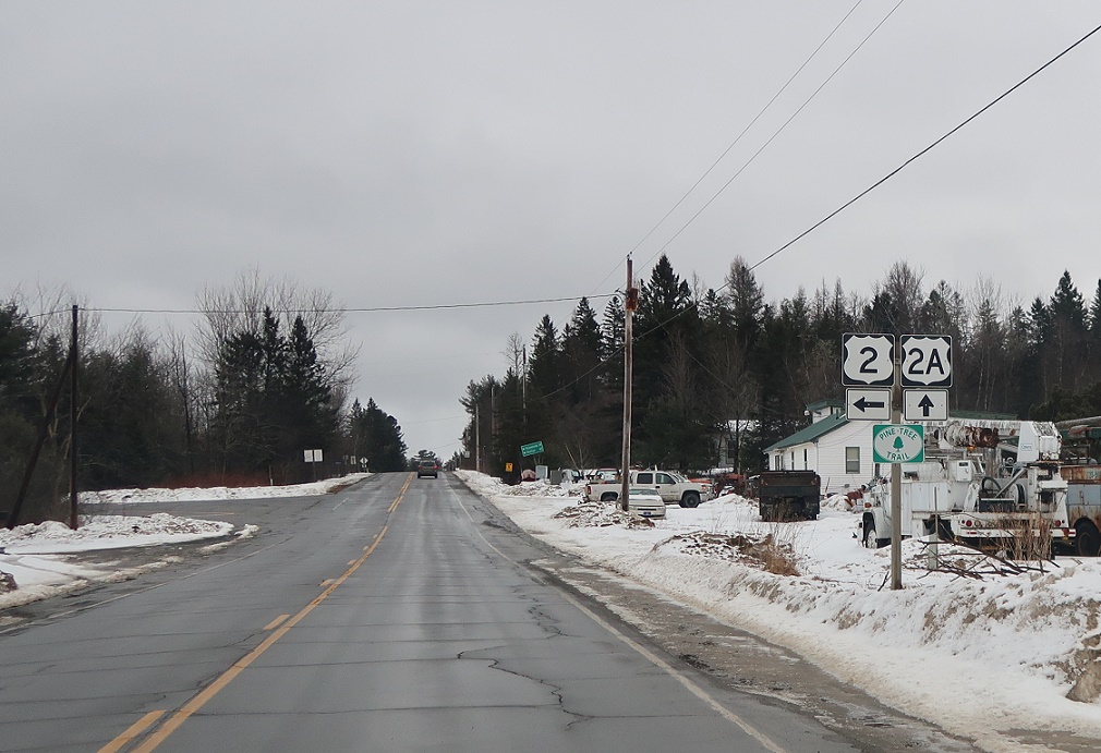 Turn left for 2 east to Sherman and Benedicta. Stay straight to stay on 2A, which is a more direct route to Houlton.