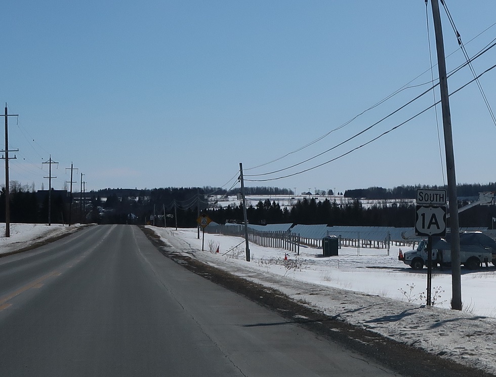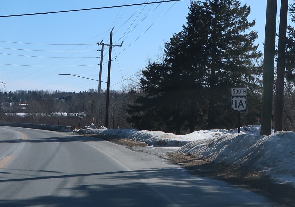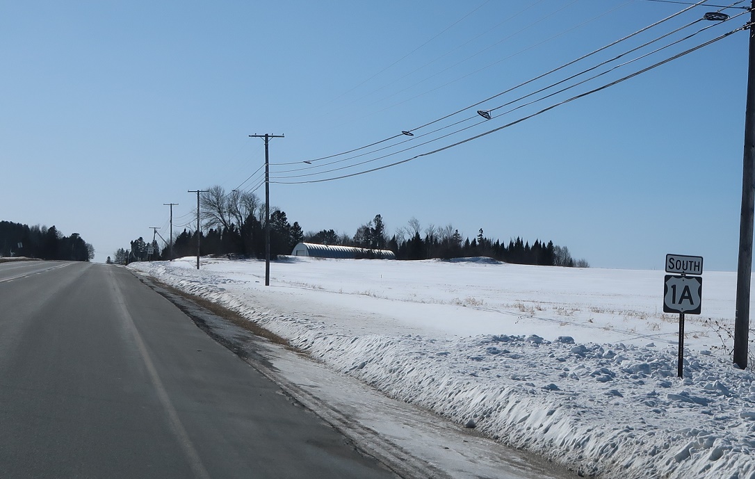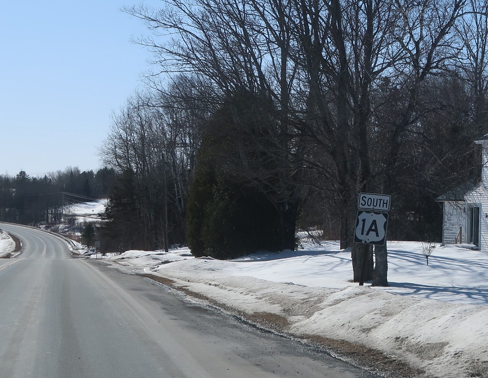 Reassurance shield a few miles later after a local road turnoff to New Brunswick. At this point the Canadian border ditches the St. John River and heads due south, so 1A will bend to the right to do the same.