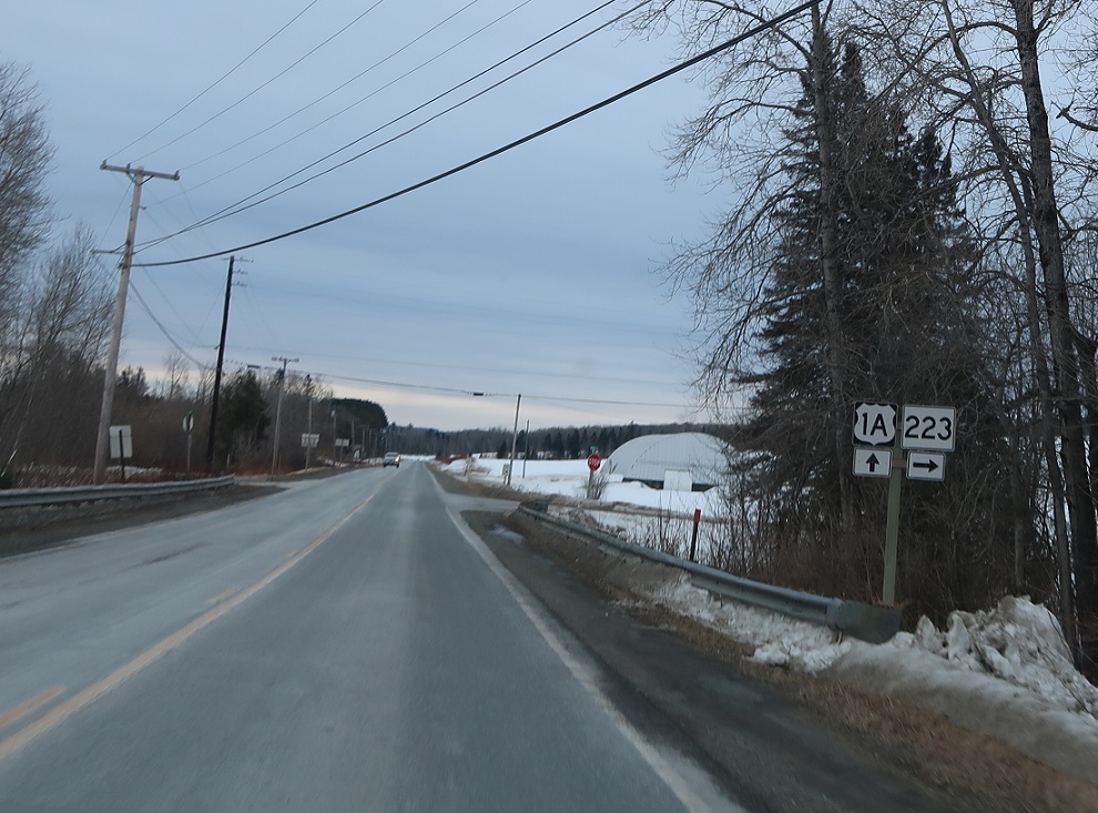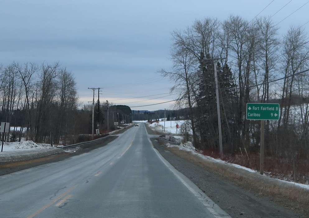 Soon thereafter, we’ll approach SR 223. Follow 223 west to Caribou. Stay on 1A for Fort Fairfield.