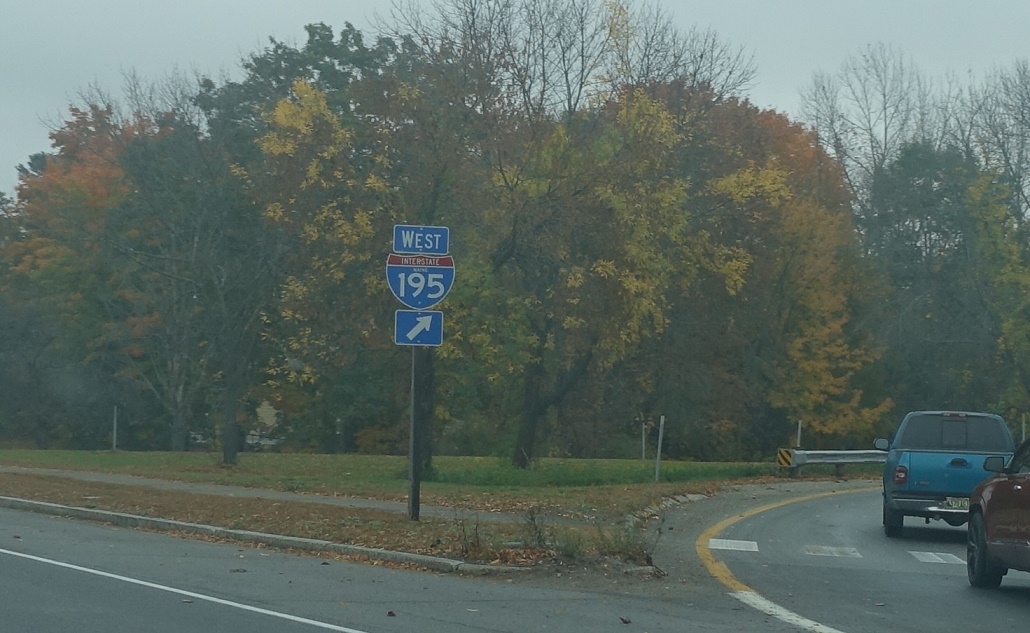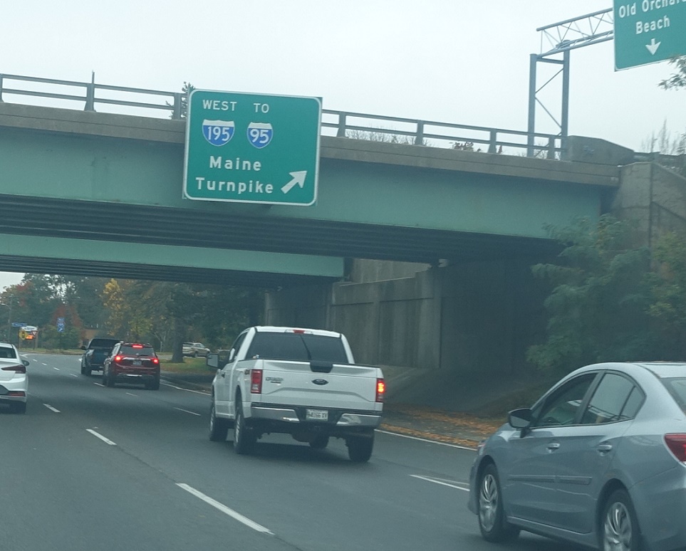 Exit right ahead for I-195 west to the I-95 Maine Turnpike.