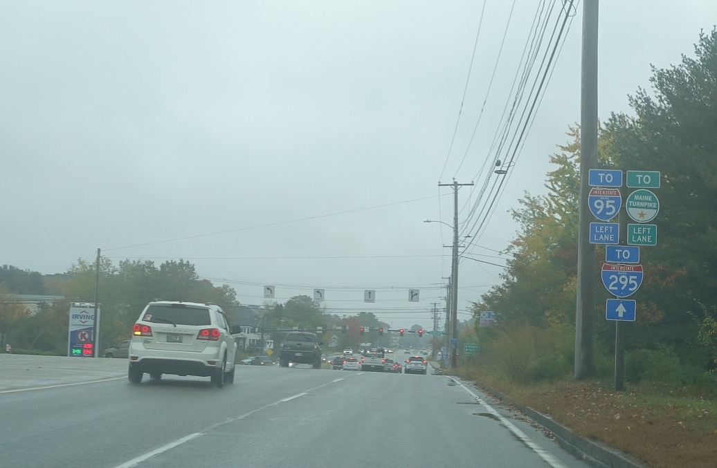 At Haigis Parkway, turn left to connect to the I-95 Maine Turnpike. Stay on 1/9 for I-295.