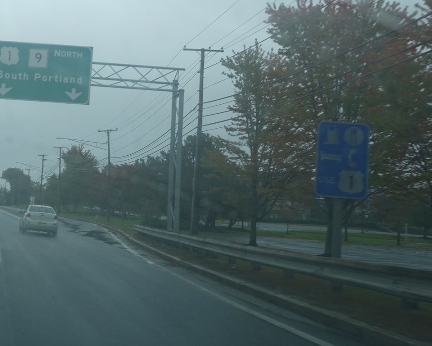 Keep left for unsigned SR 701 to the Maine Turnpike. Keep right for 1 north/9 east into South Portland.