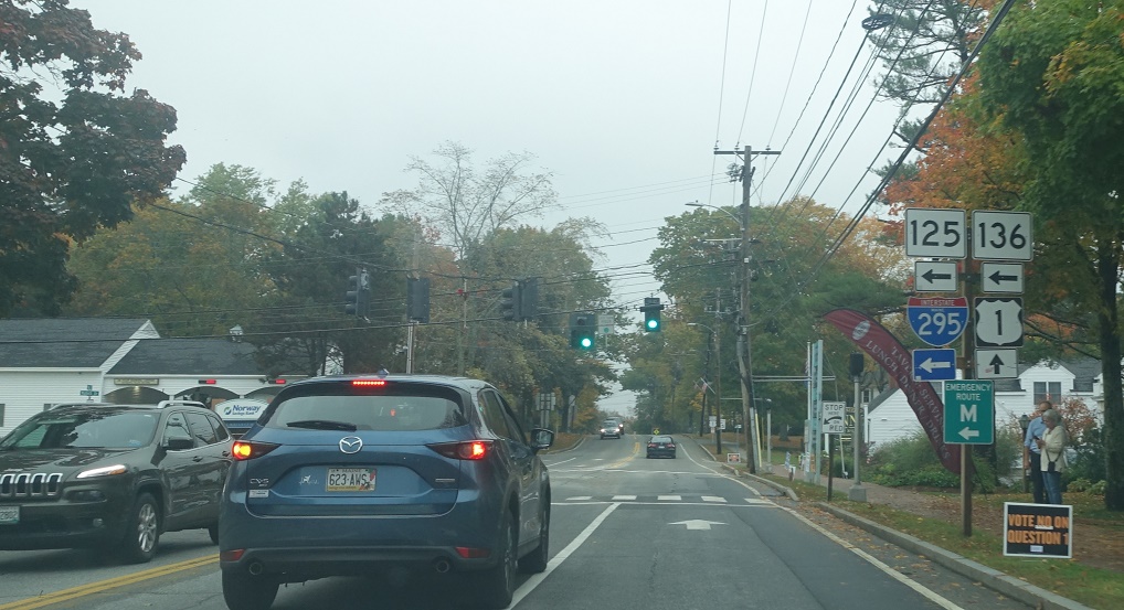 After passing LL Bean World Headquarters, we’ll approach SRs 125 and 136. Follow those north to I-295. Stay straight to stay on 1 north.