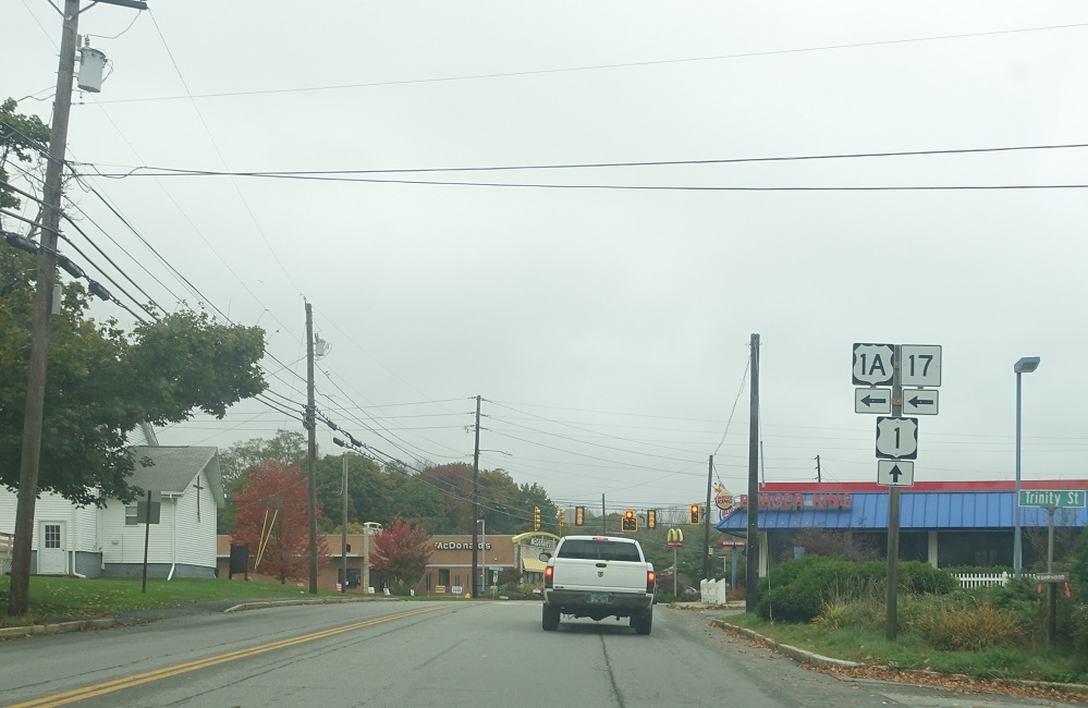 Turn left for 1A south and 17 north. Stay straight to stay on 1 north.