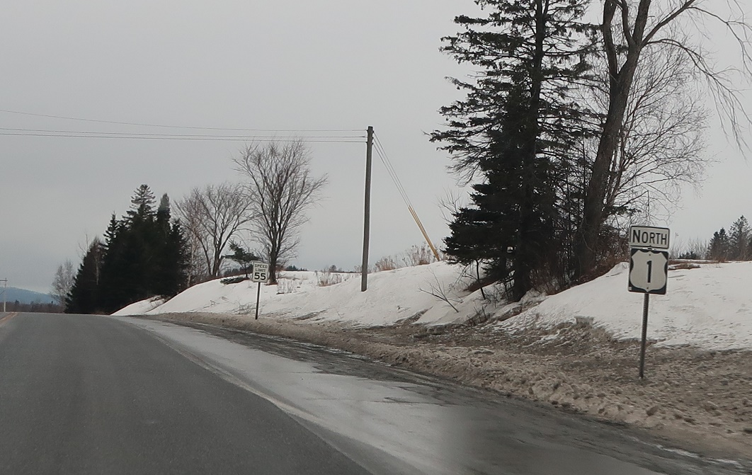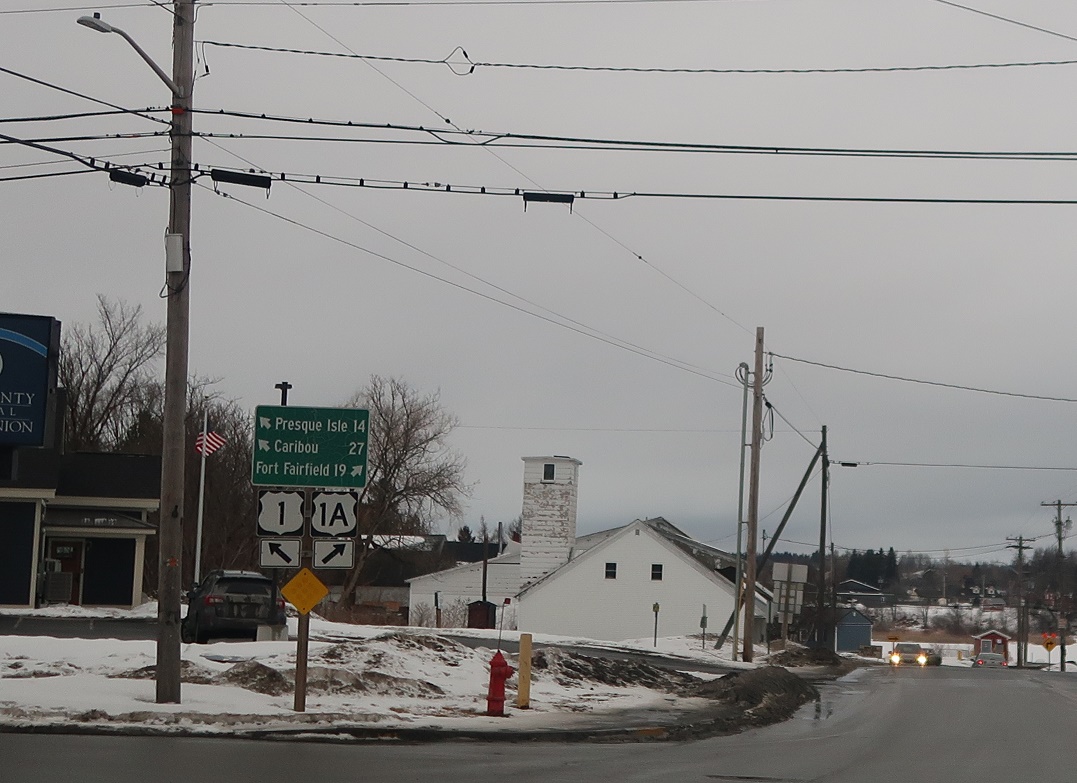 Follow 1A north to Fort Fairfield. 1A hugs the Canadian border up to Van Buren, while 1 heads further inland to Presque Isle and Caribou.