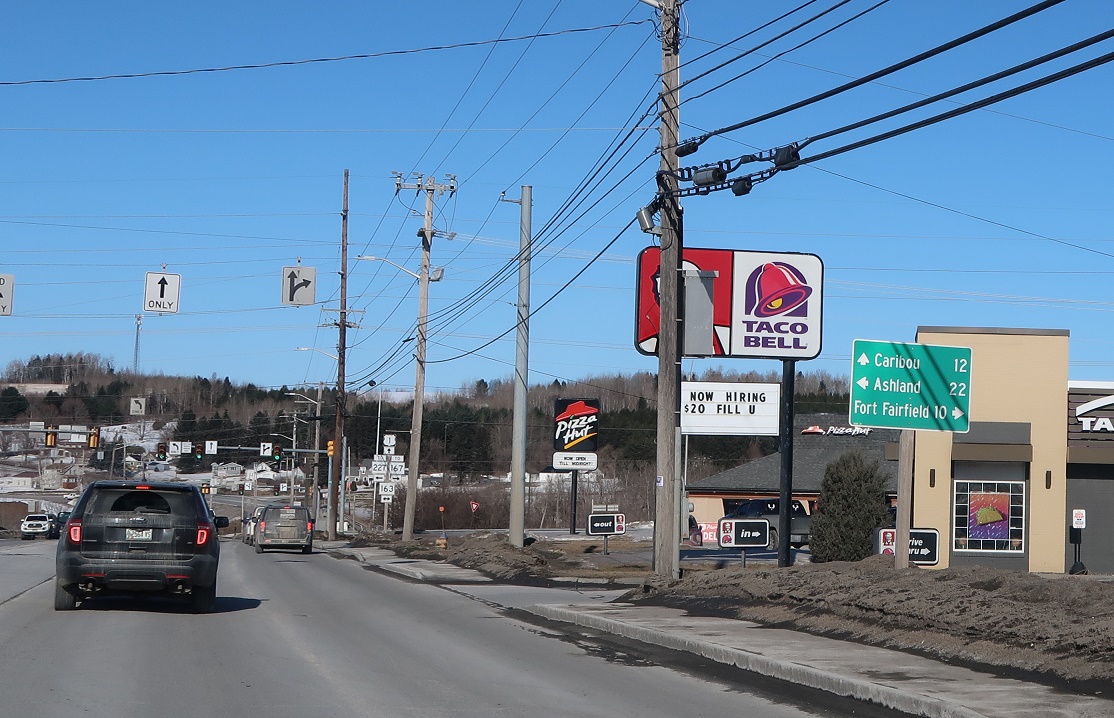 Follow 163 east to Fort Fairfield and 163 west to Ashland. Stay on US 1 for Caribou.