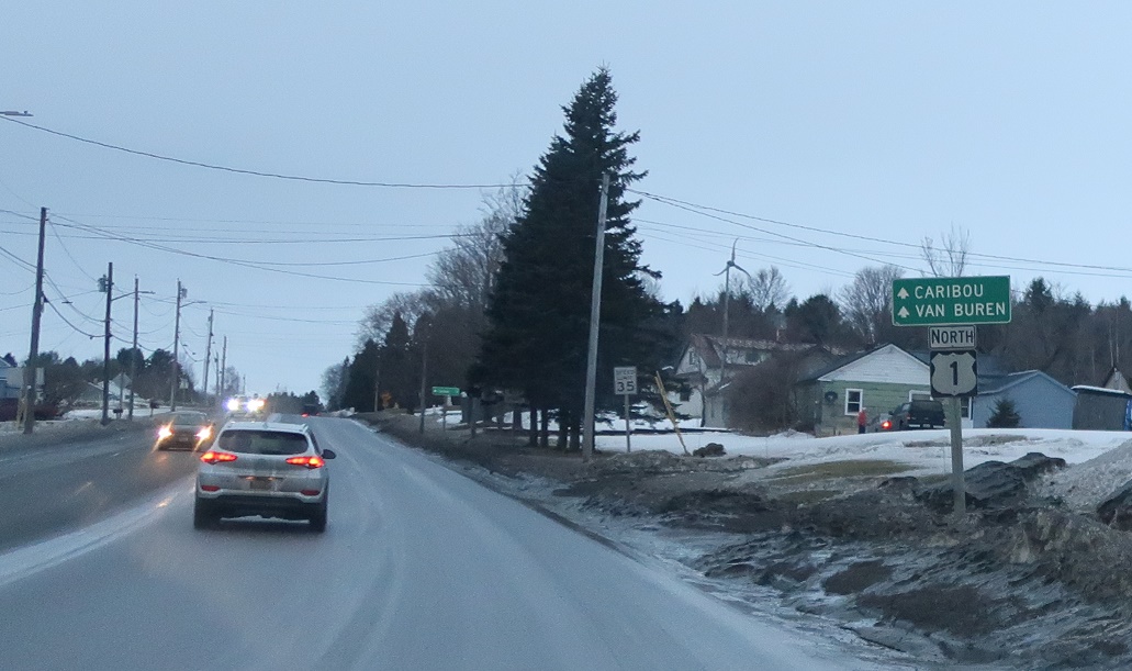 Follow 164 south north into Caribou center. Stay on US 1 for Van Buren and 1’s northern terminus in Fort Kent.