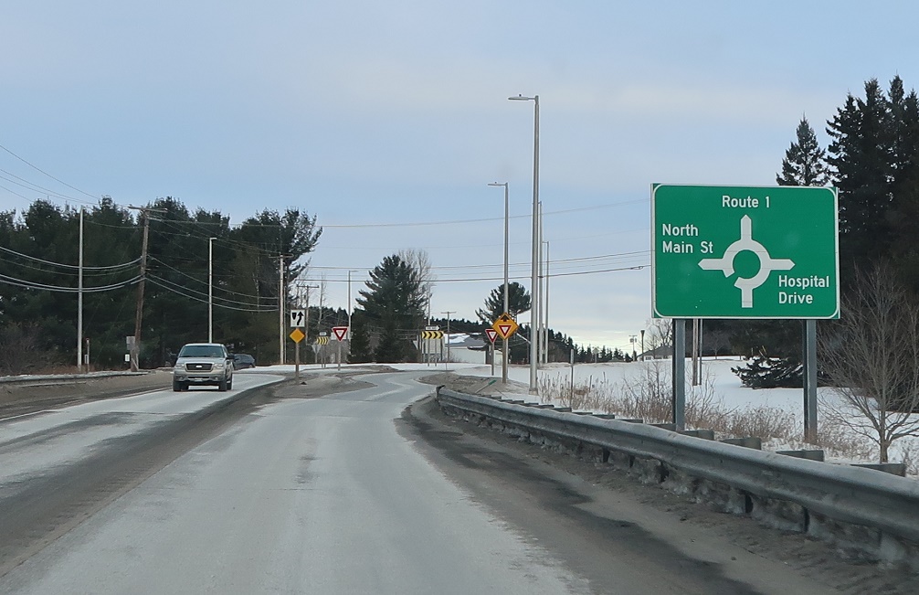 Turn right for 161 south back to US 1 south as part of a bypass for traffic heading from Fort Kent to Presque Isle.