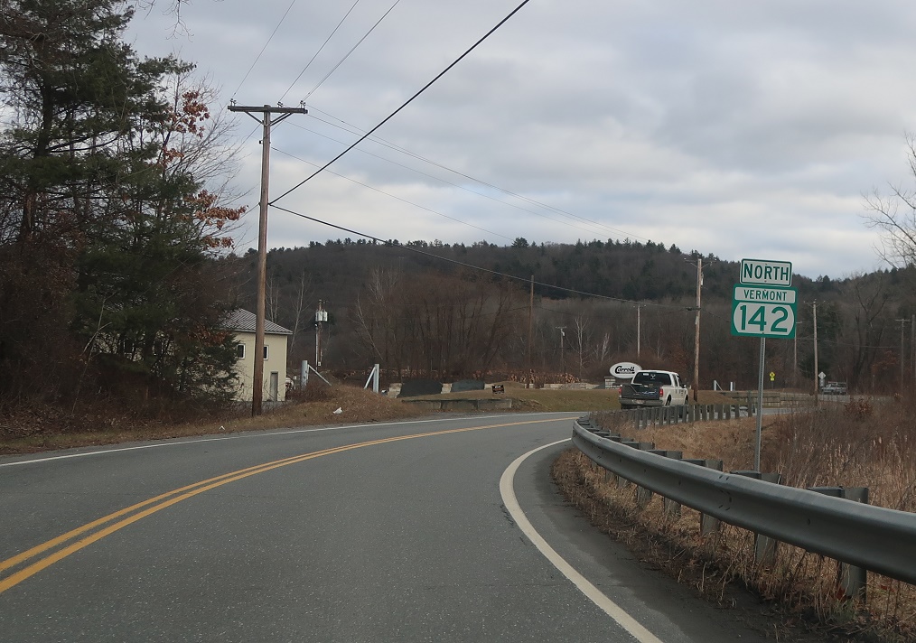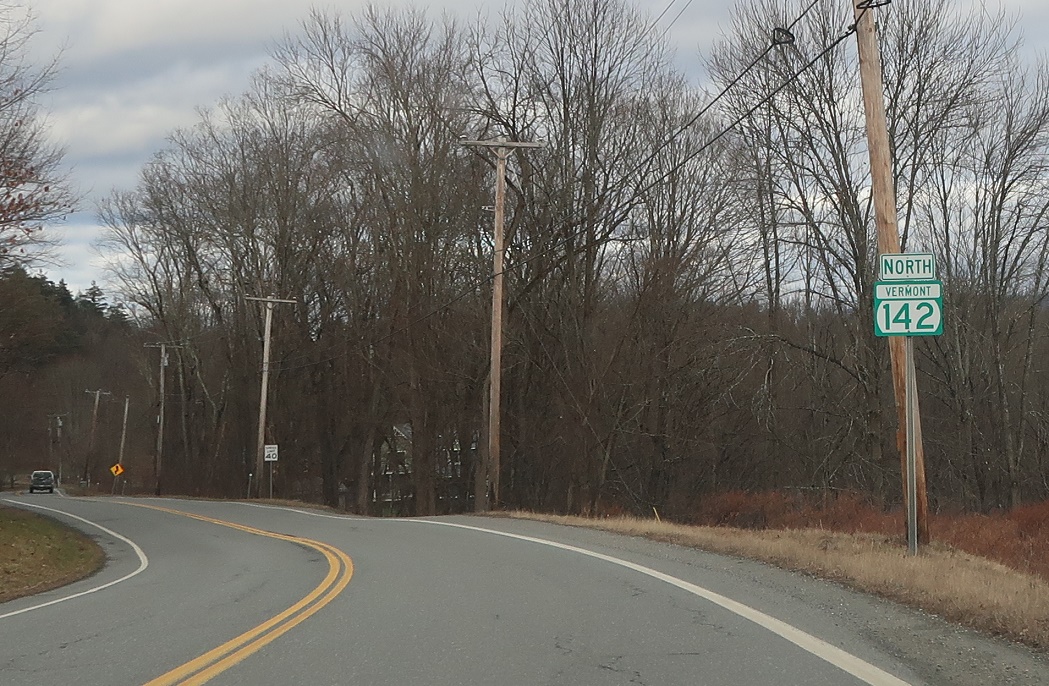Welcome to Vermont! Route 142 continues as Vermont 142.